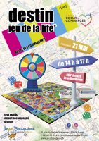 « Destin, le jeu de la life ! », un jeux de piste familial dans le centre ville, le mercredi 21 mai, de 14h à 17h. Départ prévu devant la Boutique « Jeux Bouquine ». Tournez la grande roue du destin et allez à la rencontre des commerces du centre-ville de Laval. Trouvez votre style de vie, tentez votre chance et faites-vous un destin en or !